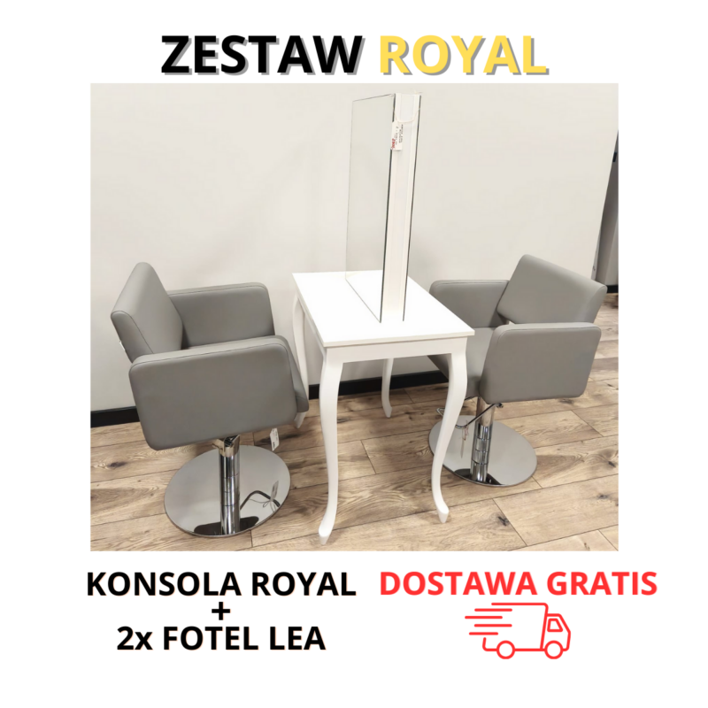 Zestaw Royal – konsoleta Royal + 2 fotele fryzjerskie Lea