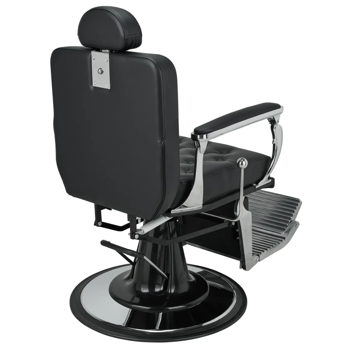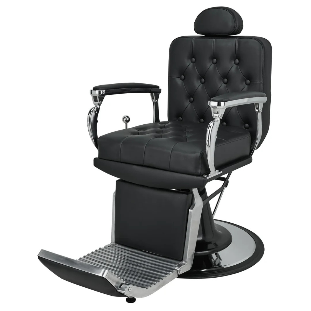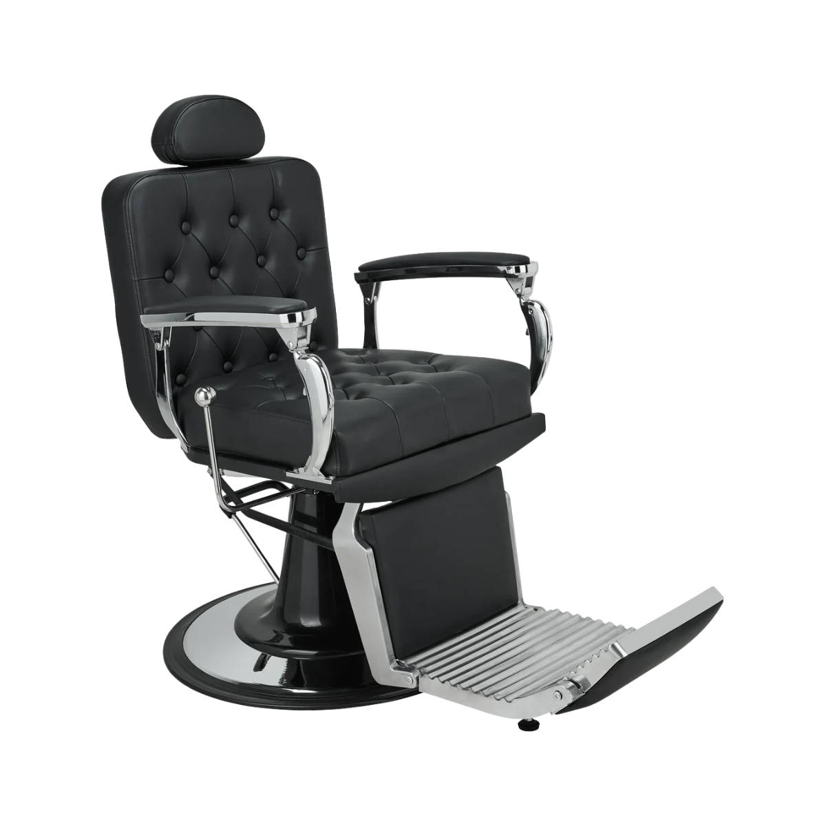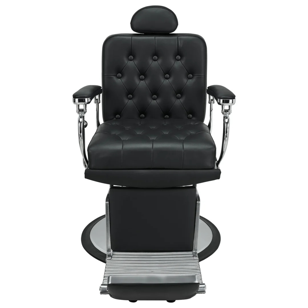 - Czarna tapicerka z głębokim pikowaniem guzikami