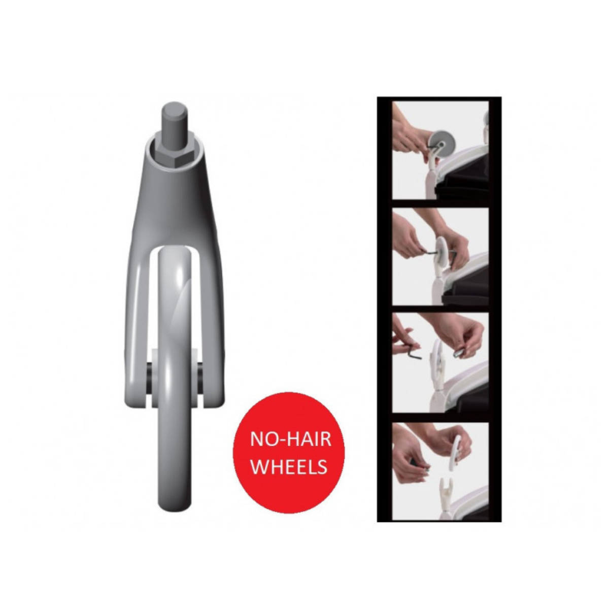 Ekskluzywne koła NO-HAIR Ceriotti są cieńsze niż standardowe koła, a dzięki zmniejszonemu kontaktowi z podłogą zbierają mniej włosów, pozostając zawsze czyste i skuteczne. Mocowanie kółek zostało tak zaprojektowane, aby zapobiec owijaniu się włosów wokół łożyska. Kółka można też dokładniej oczyścić, usuwając koło w sposób wskazany w instrukcji, bez żadnego wysiłku.