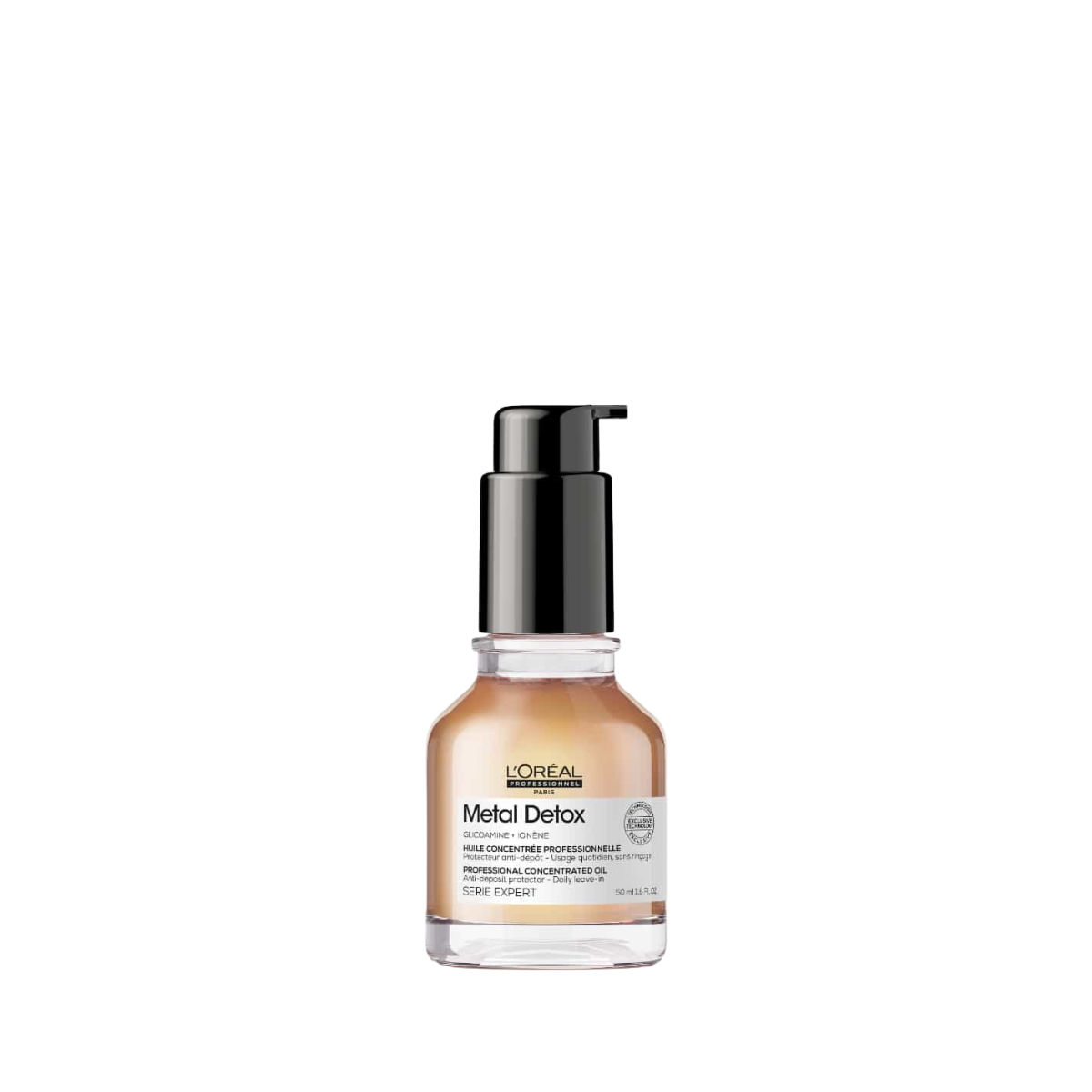 Profesjonalny, skoncentrowany olejek do włosów chroniący przed osadzaniem się metali w ich wnętrzu. Skoncentrowany olejek ochronny do włosów Metal Detox chroni przed wysoką temperaturą do 230 C i jest odpowiedni do każdego rodzaju włosów.