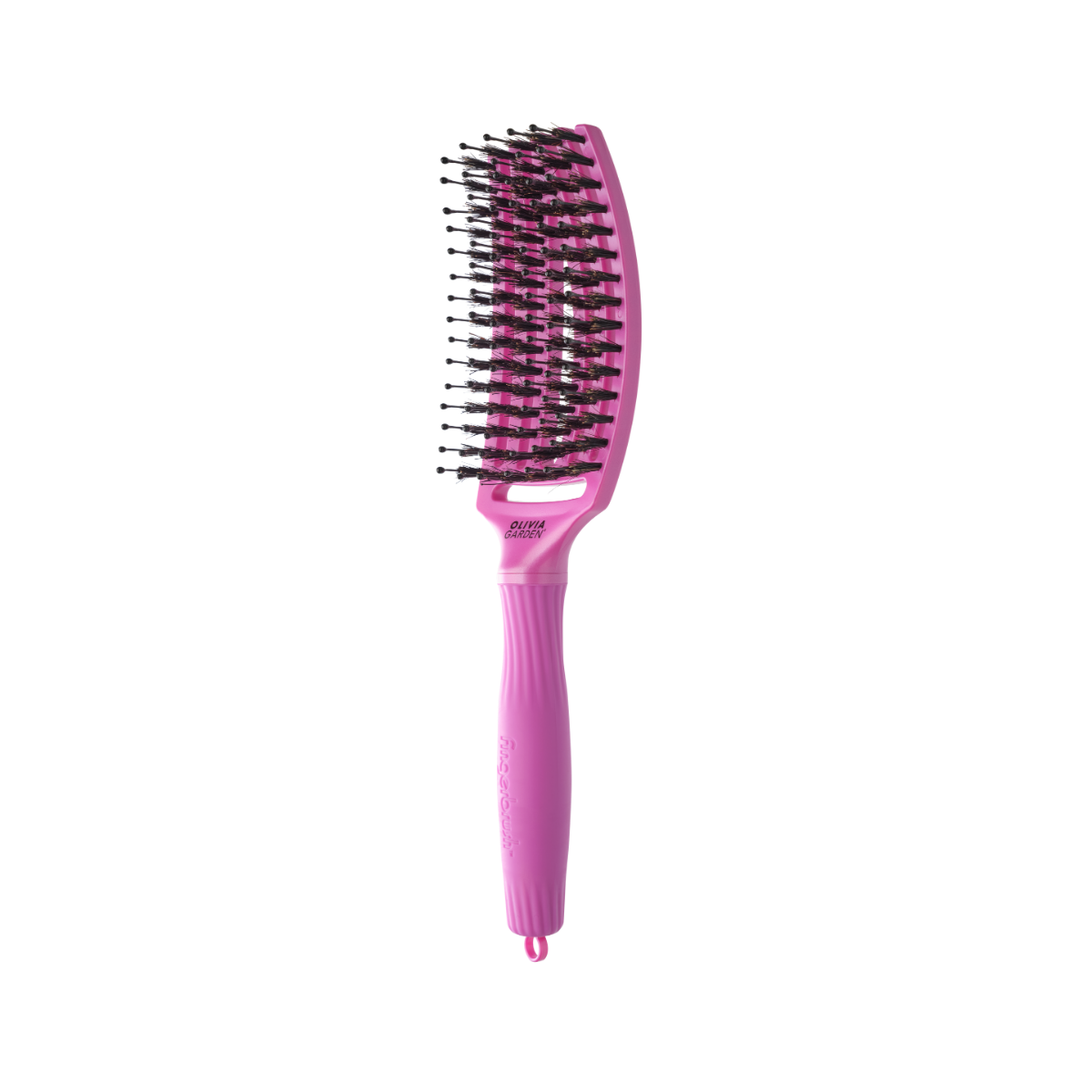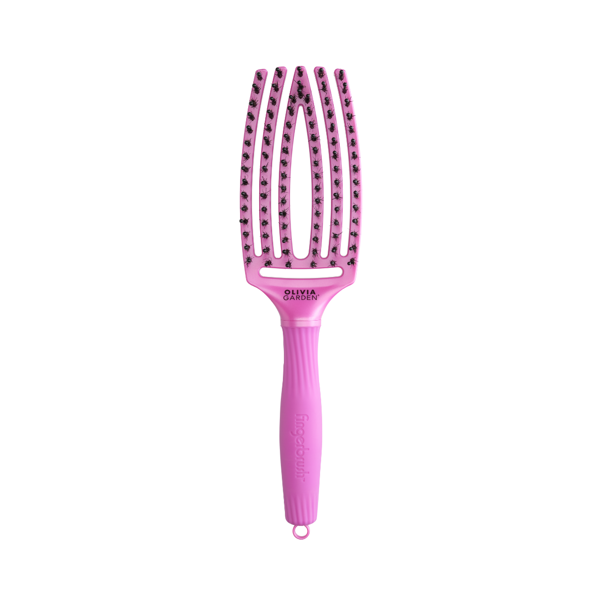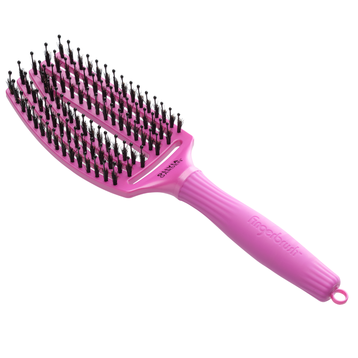Innowacyjna szczotka Olivia Garden Fingerbrush posiada specjalnie profilowany kształt głowicy, dzięki temu lepiej masuje skórę głowy. Oprócz tego wyróżnia ją specjalne połączenie antystatycznych kolców zakończonych kulką z 100% włosia z dzika. Włosy zyskują objętości oraz blasku. Idealna do rozczesywania włosów zarówno suchych, jak i mokrych.