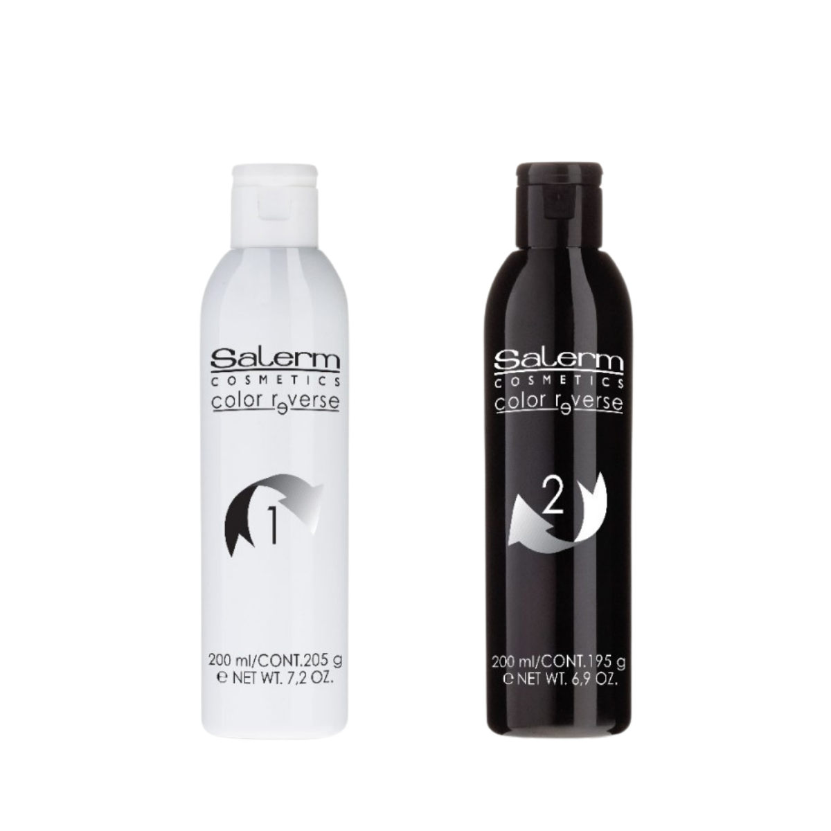 Wymieszaj równe części Color Reverse 1 i Color Reverse 2 w czystej misce. Mieszaj przy pomocy pędzelka aż do uzyskania jednorodnej struktury, następnie nałóż bezpośrednio na suche nieumyte włosy. Pozostaw na 20 minut (w celu przyśpieszenia procesu wskazane jest użycie czepka), następnie spłucz włosy dużą ilością wody i umyj szamponem oczyszczającym Salerm Cosmetics. Aby zneutralizować wszelkie pozostałości powstałe w wyniku technicznego procesu usuwania koloru zalecamy użycie naszego preparatu: 3% utleniacz w kremie rozcieńczony z wodą w stosunku 1+1 do uzyskania płynnej i kremowej emulsji, nałożony na całą długość włosów i pozostawiony na 5 minut. Potem spłucz dokładnie. W przypadku późniejszego farbowania wskazane jest użycie koloru o dwa odcienie jaśniejszego od pożądanego efektu.