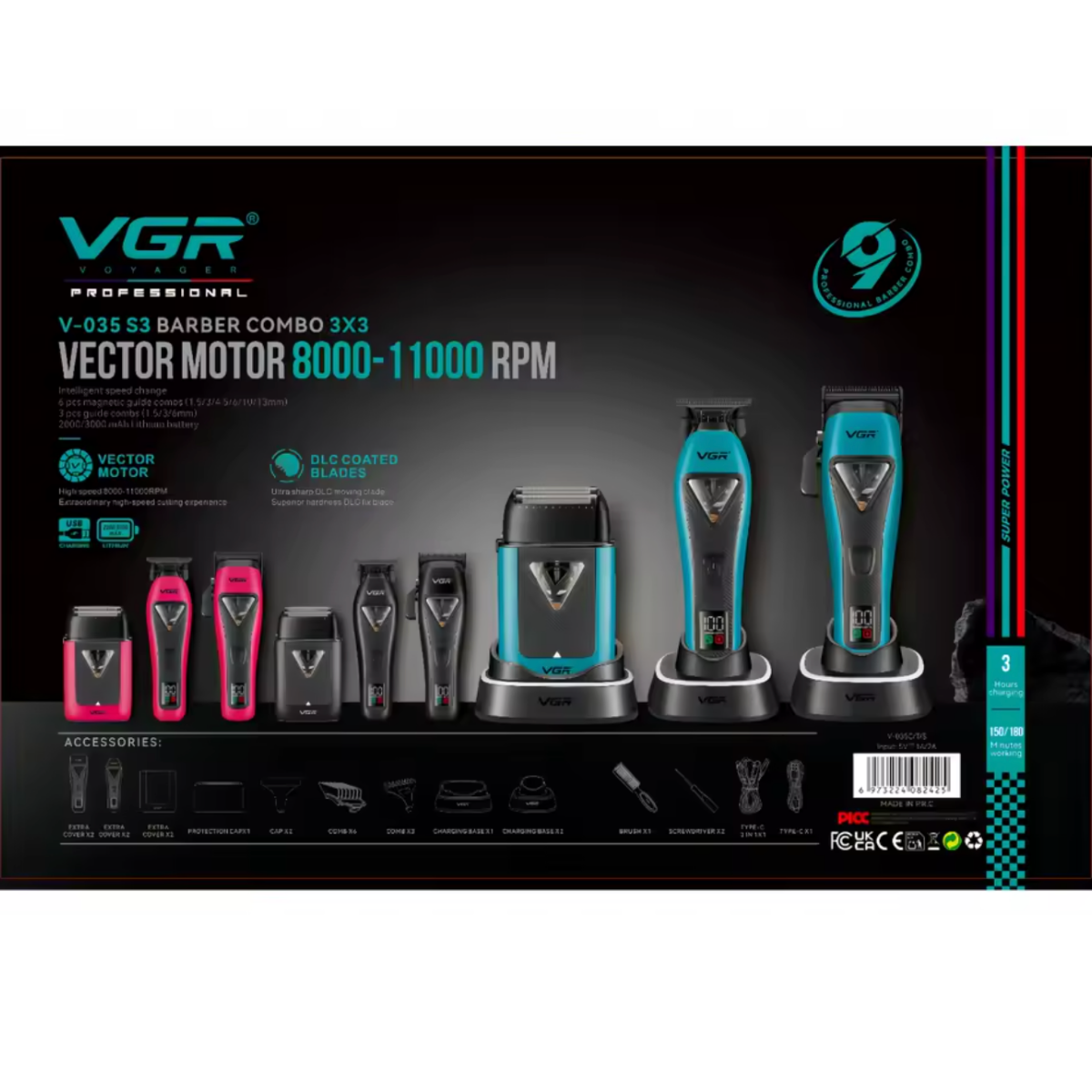 Ogromny i wypasiony zestaw topowych sprzętów VGR. Maszynka, trymer i golarka z silnikami vectorowymi.
