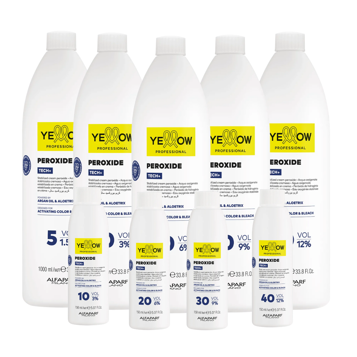 Yellow Peroxide jest profesjonalnym utleniaczem do farb. Zawiera nadtlenek wodoru który rozjaśnia i utlenia włosy. Dodatkowo w celu ochrony skóry głowy oraz włosów dodano olejek arganowy oraz innowacyjną formułę Aloetrix, która zawiera łagodzące ekstrakty z pszenicy i aloesu.
