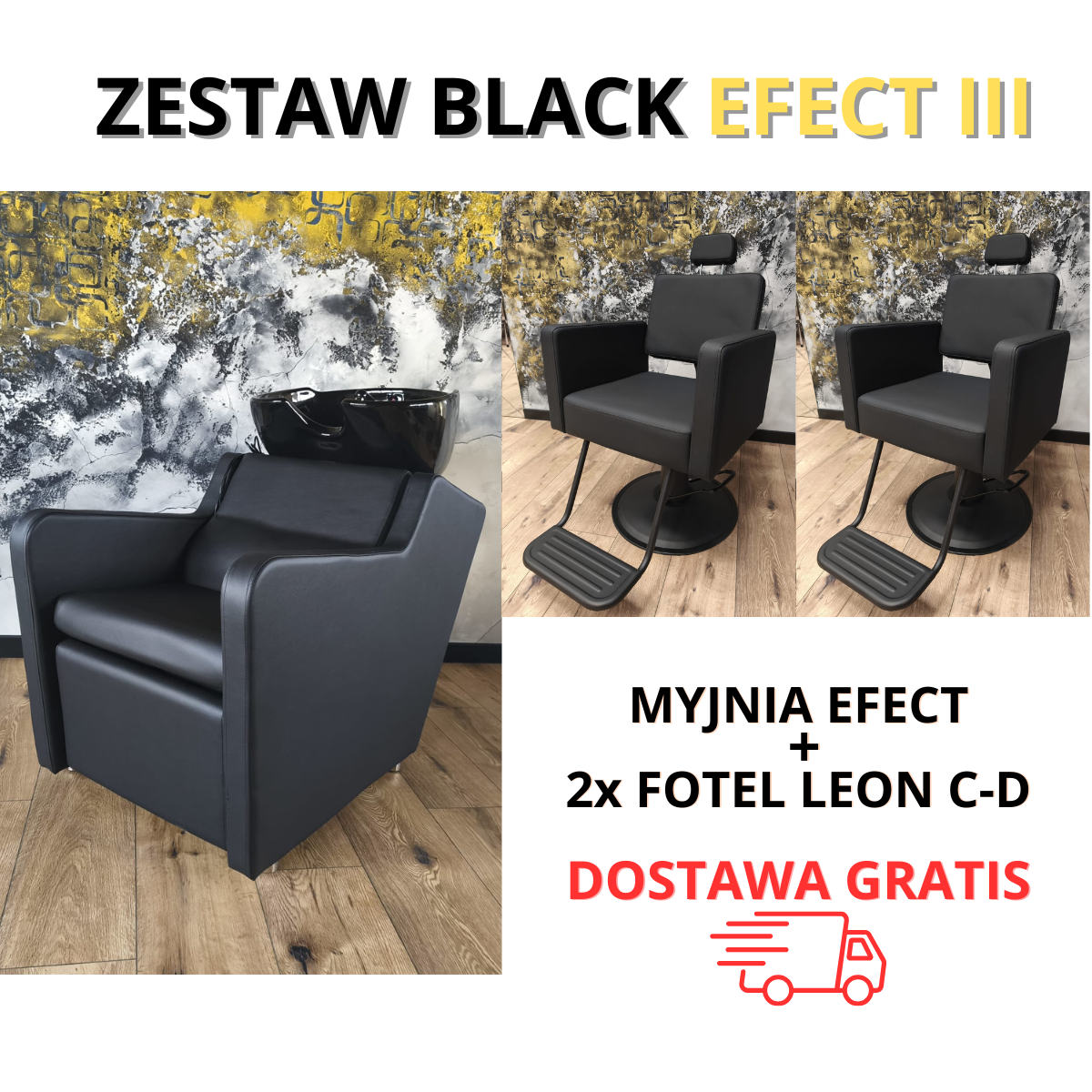 Zestaw Black EFECT III – myjnia Efect + 2 fotele LEON C-D