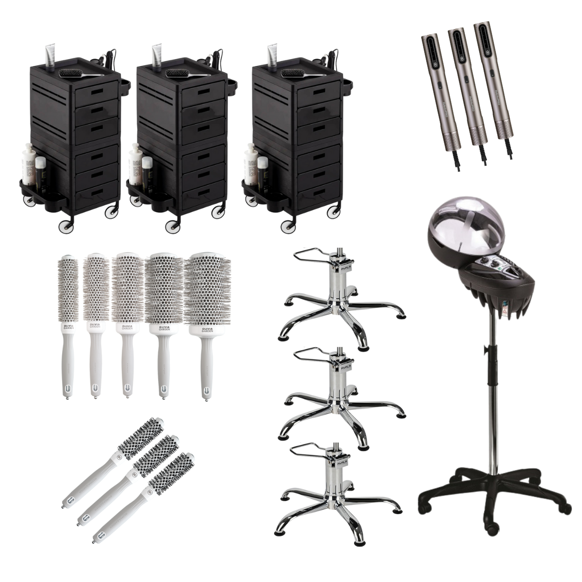 Zestaw Fryzjerski – suszarki, szczotki, pomocniki, nawilżacz oraz podstawy